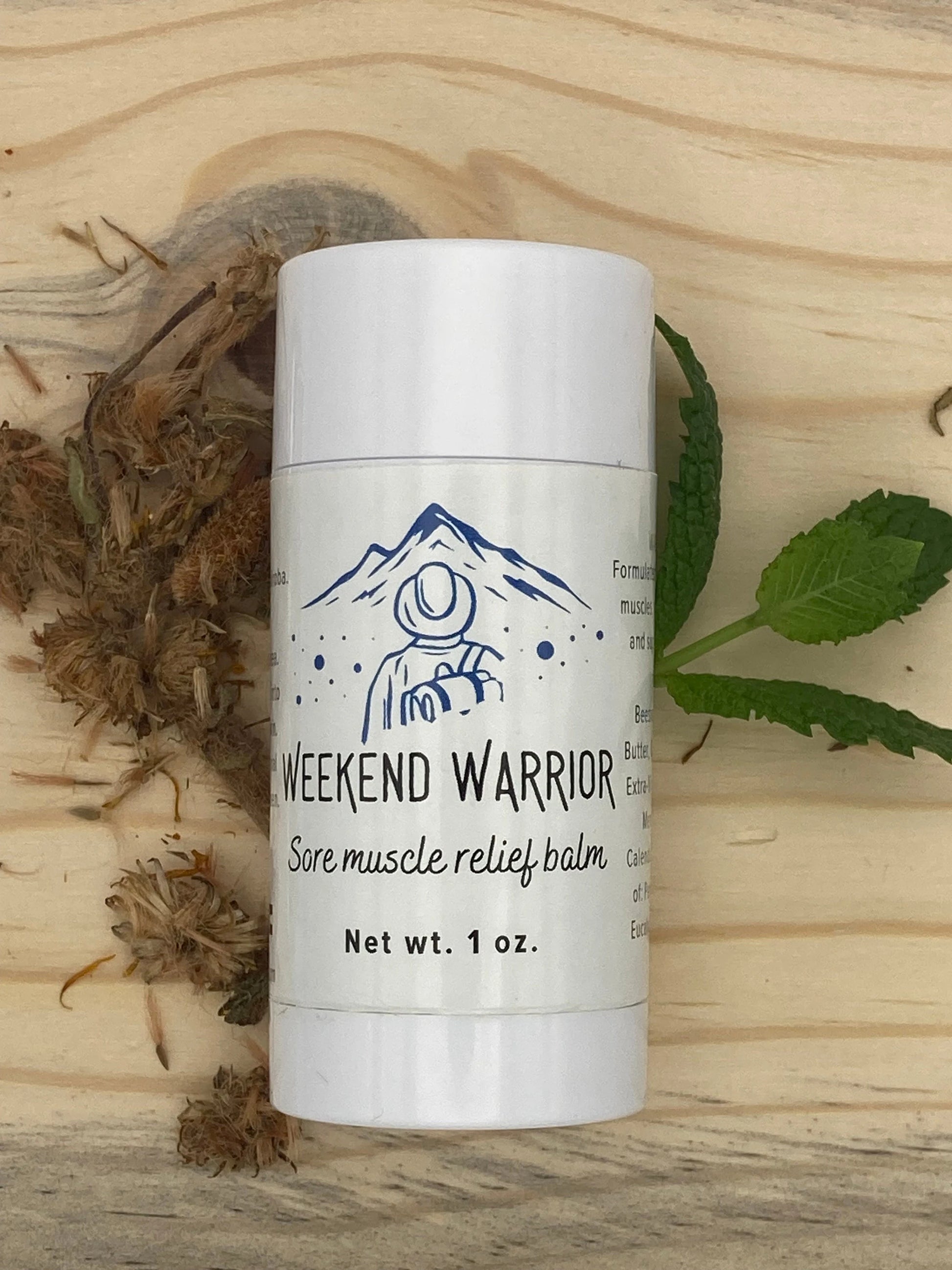 We created this arnica and calendula infused sore muscle balm to help provide relief to overworked joints + muscles. As lifelong athletes and outdoor enthusiasts, we found ourselves needing support with inflammation, tight muscles, and discomfort. Weekend Warrior is a balm to help everyone keep exploring despite our wear and tear.